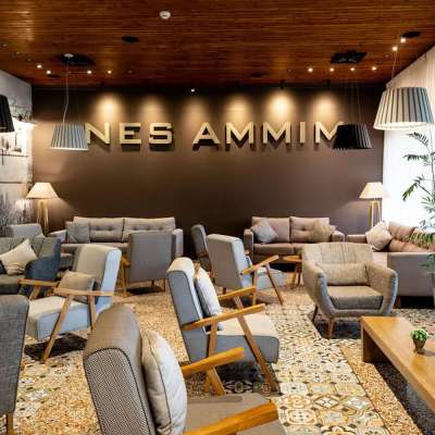 בין עכו לנהריה, מוקף בכרי דשא נרחבים ובסביבה פסטורלית, מציע מלון נס עמים חווית אירוח כפרית מיוחדת. הכפר נס עמים הוקם בשנת 1963 ע"י רופא הולנדי. יחד עם חבריו היהודים, הקים ישוב מבוסס אידיאולוגיה ותמיכה בעם היהודי. לרופא ההולנדי היה חשוב להביא מתנדבים אירופאים לישראל, ויחד עמם, להראות סולידריות עם עם ישראל בעקבות השואה באירופה. במקום "מוזיאון" – אוטובוס שוויצרי והסיפור על הקמת הבית הראשון בארץ ישראל תוך שיתוף פעולה עם הישובים השכנים לנס עמים. עד היום, מתופעלים הכפר וחלקו של המלון ע"י מתנדבים אירופאים המגיעים לתקופות של 6-18 חודשים במהלכם הם חווים את ארץ ישראל על מגוון תושביה והתרבויות שבה. בכפר מרכז למידה ודיאלוג אליו מגיעות מפעם לפעם קבוצות המקיימות דיונים על נושאים שבין העמים ומתארחות בבית המלון. בבית המלון 48 חדרי אירוח באווירה כפרית ובסביבה פסטורלית, מוקפים במדשאות ובספסלי עץ בפינות הגן. כמו כן, קיימת אפשרות ללינה באחת מ- 8 דירות הקיבוץ שבמלון. עוד במלון: בריכת שחייה (בעונה), בית כנסת, מגרשי משחקים לילדים, פינת תה/קפה לשימוש האורחים, אינטרנט אלחוטי וחדרי אירועים וכינוסים.