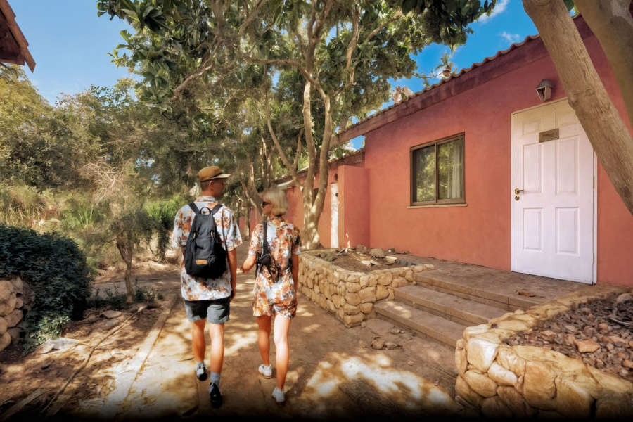 The 15 Og River rooms face the Judean Desert cliffs. The spacious rooms are suitable for couples and families. All rooms have a patio on which to enjoy morning coffee and view the magnificent desert views and green expanses of lawns. In the Og River rooms, guests enjoy air- conditioning, a mini refrigerator, television with a variety of channels and a coffee stand.