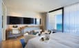 Executive SuiteThe Executive Suite offer all the facilities for families without compromising on an elegant and modern design. All Suites have a seaView Balcony, bedroom, desk and a dining table. For guest more than 18 years old, free entrance to the Business Lounge. Maximum Occupancy : 2 Adults and 2 children ( up to 12 years old).