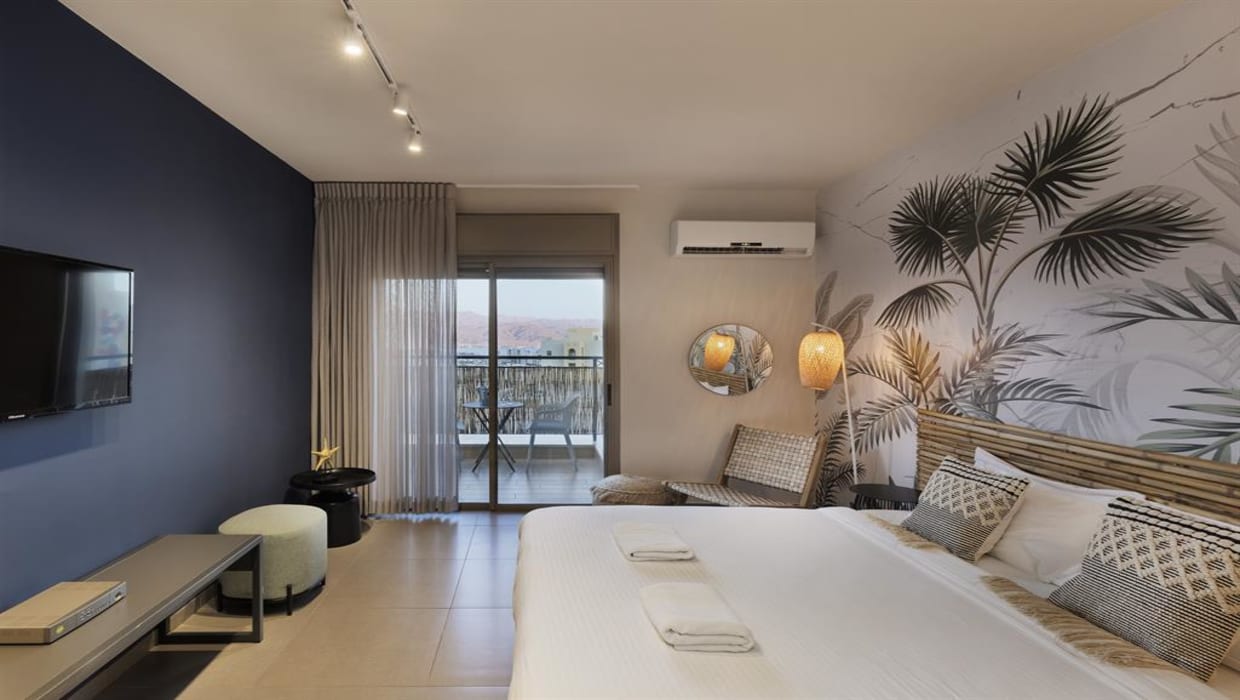 פנטהאוס שני חדרי שינה וסלון עם מרפסת ונוף לבריכה