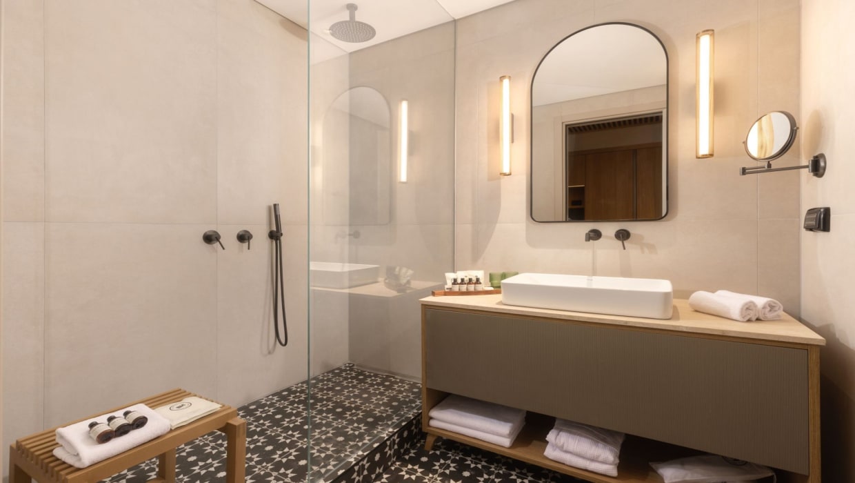 סוויטה מרווחת ומעוצבת בגודל 57 מ"ר, אידיאלית למשפחות של זוג + 4 ילדים או ל 4 מבוגרים. כוללת חדר שינה זוגי, סלון עם ספה נפתחת, חדר רחצה מודרני ופינת אוכל. העיצוב הנעים, בשילוב תאורה טבעית ושפע של נוחות, מציע חוויית אירוח מושלמת למשפחות.