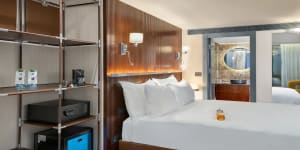 חדר זוגי מרווח ונעים, המשלב עיצוב אלגנטי עם נוחות מקסימלית. כולל מיטה זוגית רחבה, פינת ישיבה, מקלחון מפל גשם מרענן, פינת קפה, מיני בר וטלוויזיה HD. אידיאלי לחופשה רגועה בעיר. (גודל החדר: 17 מ"ר)