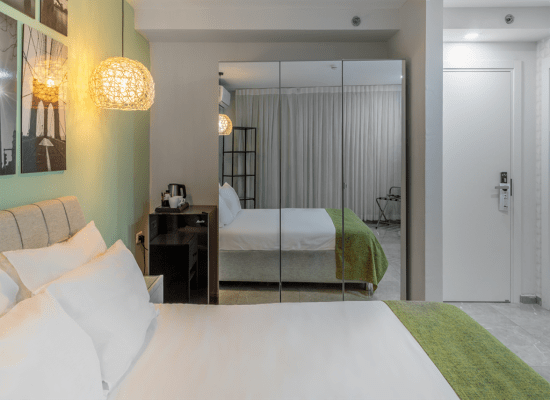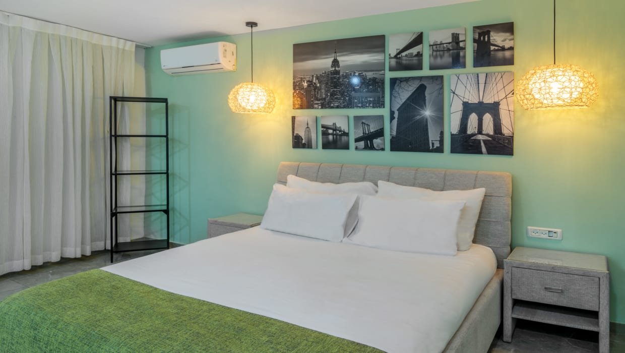 החדר מתאים לזוג, אפשרות למיטה זוגית או שתי מיטות נפרדות. בחדר : טלוויזיה בכבלים, כספות דיגיטליות, מקרר קטן, ערכות קפה, אינטרנט אלחוטי חינם