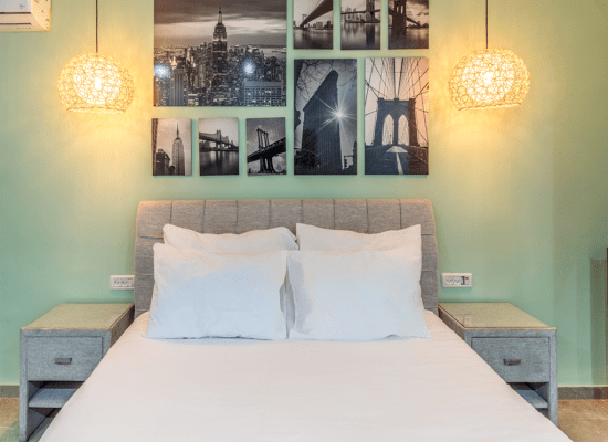 חדרים משופץ אם מיטה זוגית ומקלחת ממוקם בקומה ראשונה. בחדר: טלוויזיה בכבלים, מקרר קטן, ערכות קפה, אינטרנט אלחוטי חינם.
