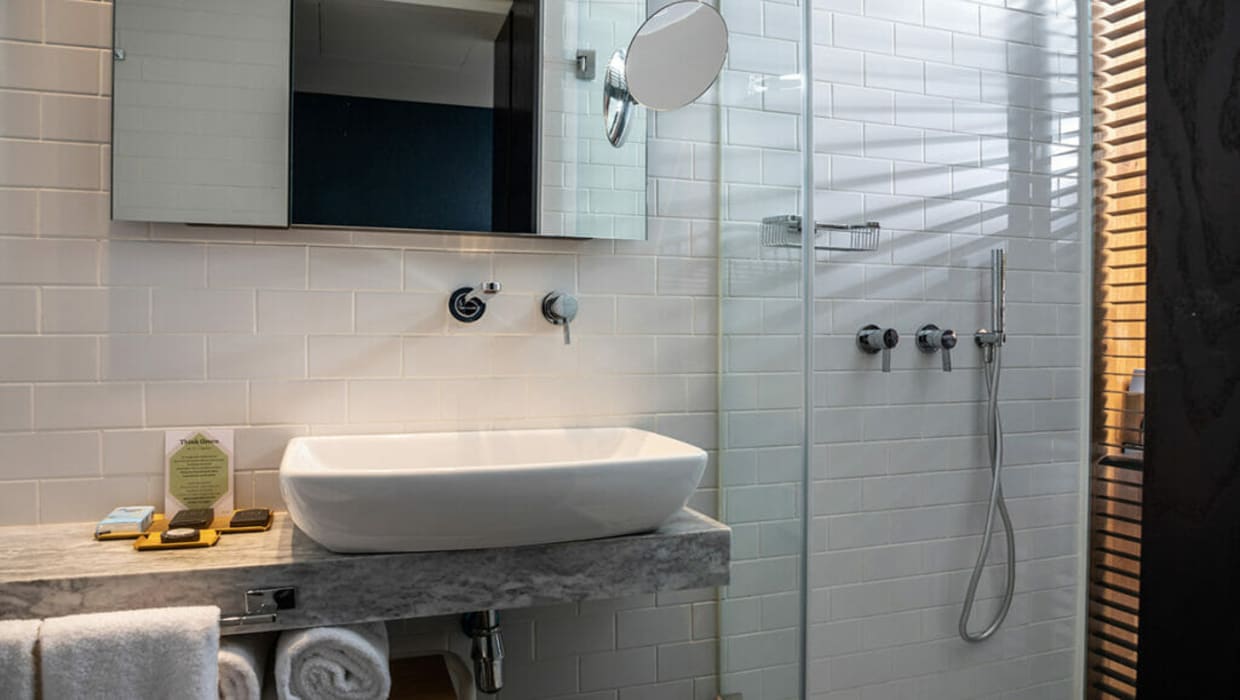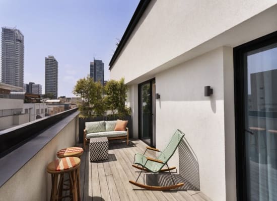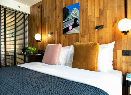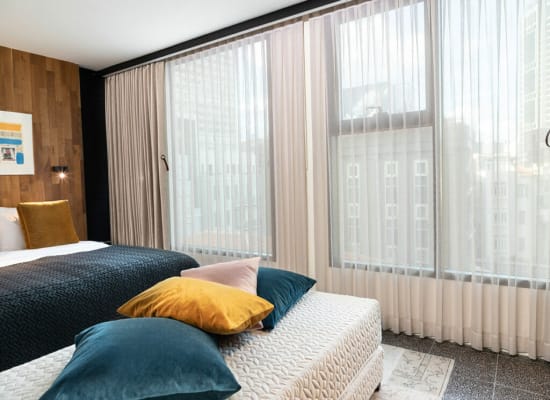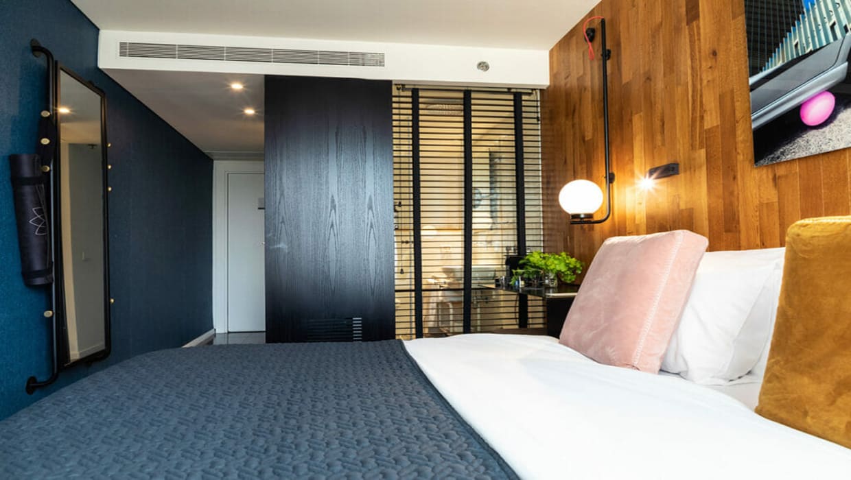 חדר זוגי עם נוף לחצר הפנימית של המלון, המתאים באופן אידיאלי לזוג או ליחיד המגיעים לעיר לחופשה קצרה או לביקור עסקים. עם כניסתכם לחדר תוכלו להבחין מיד בעיצוב ייחודי בהשראת הסביבה המקומית - משחקי טקסטיל עדינים, שימוש בעץ טבעי וגוונים של כחול עמוק, המשולבים עם יצירת אמנות מקורית של האמנית ג'ניפר אבסירה. החדר כולל מבודדי רעש איכותיים, הדום ישיבה נוח, מיטת Queen size מפנקת עם מצעים רכים ונעימים במיוחד. חדר הרחצה המעוצב באריחים לבנים כולל מקלחת עם ראש גשם, ומאובזר היטב במגבות איכותיות ומוצרי טיפוח מובחרים.