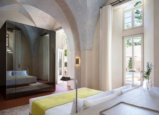 חדרים בעיצוב עכשווי ויוקרתי באגף המודרני, עם נוף מדהים לחצר הפנימית הקסומה מול האגף ההיסטורי או לבריכת המלון. חדר באגף החדש , 31 מ"ר , מיטת קינג King Size Bed