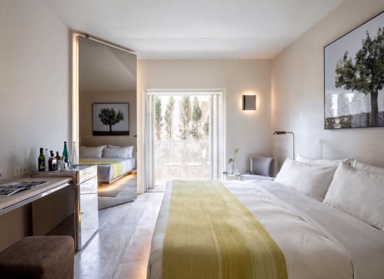 חדר נגיש בעיצוב עכשווי באגף המודרני ומרפסת פרטית עם נוף ייחודי ליפו העתיקה. חדר באגף החדש, 31 מ"ר , מיטת קינג King size bed