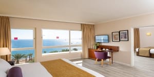 סוויטה משפחתית חלומית עם 2 חדרי שינה ונוף עוצר נשימה המשקיף לים (ללא מרפסת). לחדר מסוג זה קיימת כניסה לטרקלין העסקים