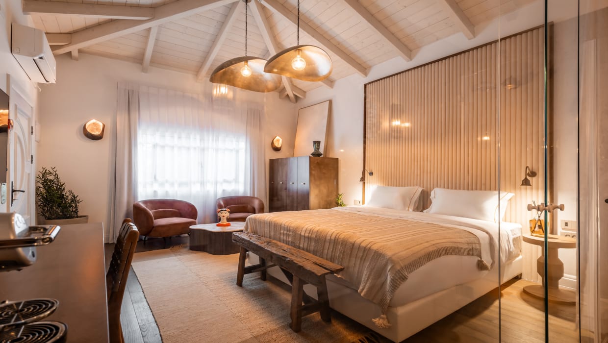 חדרים גדולים במיוחד עם מרפסות מעוצבות הפונות למושבה חדר חמים ועוטף לפינוק זוגי אינטימי המושלם לסופשבוע כפרי שלוו עם מרפסת לנוף המושבה הציורית. גודל החדר:30 מ"ר אבזור: מסך LCD 50 | חיבור ל YES | אינטרנט אלחוטי | מכונת אספרסו | כספת | מיני בר מזגן | מקלחון | מייבש שיער | פרקט בחדר | חלוקים+ נעלי ספא